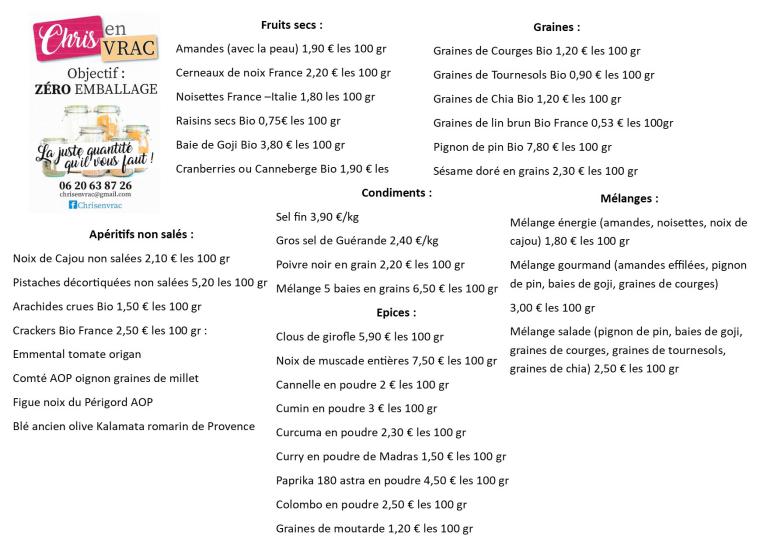 Je vends des produits en vrac sur les marchés (Quincampoix, Bertrimont, Dieppe et Sotteville-lès-Rouen) et à domicile en Seine Maritime depuis 2 ans.